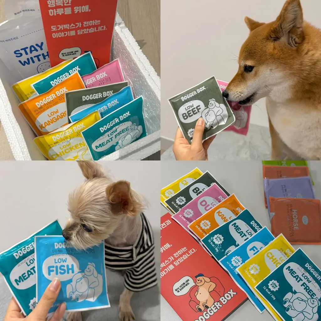 언제부턴가 간식도 거부를 했고.. 피토+젤리형 피 설사를 두번정도 해서 병원을 데리고 몇가지 검사를 했지만 주사+ 약처방을 받았고 장염이나 간식으로 인해 상처가나고 일시적으로 고인피가 나올수 있다고 들었지만 그때부터 대체 간식이나 사료를 끊고 화식을 알아보던중 도거박스를 보게 되었고 제일 좋았던건 강아지들에게 맞춰진 식단이 있다는게 너무 좋았습니다 강아지가 어느순간 눈물이 많아져서 항상 눈물+눈에 좋은 영양제들만 챙겨줬는데 의미가 없더라구요..
